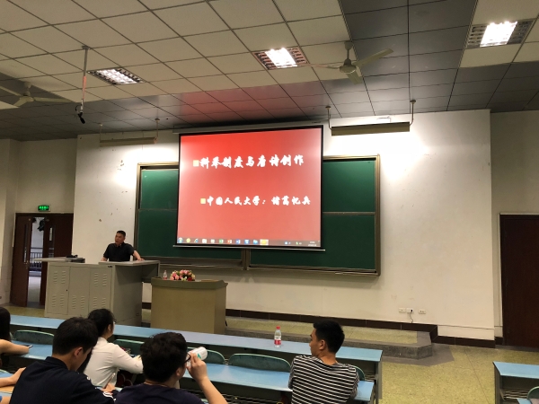 5月8日晚,中国人民大学国学院副院长、博士生导师诸葛忆兵教授应邀莅临我校知津楼红河一阶,为今年会官网300多名师生举办了题为“唐代科举制度与唐诗创作”的学术讲座。院长助理王长武以及黄贤忠博士、肖丽容博士到场聆听。