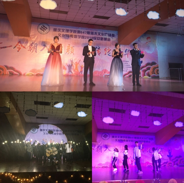 余秋携冬意,周广溢青春。11月17日晚7点,校第647期“周末文化广场”暨文化与传媒学院2018级迎新晚会在活动中心三楼成功举行,本次活动由校团委、学生联合会、学生社团联合会主办,文化与传媒学院承办。学院院长李天福,党总支书记、关工委主任白成良,关工委委员蒋永平,各级辅导员,兄弟学院学生干部作为嘉宾出席了本次活动。今年会官网17、18级全体同学到场观看。