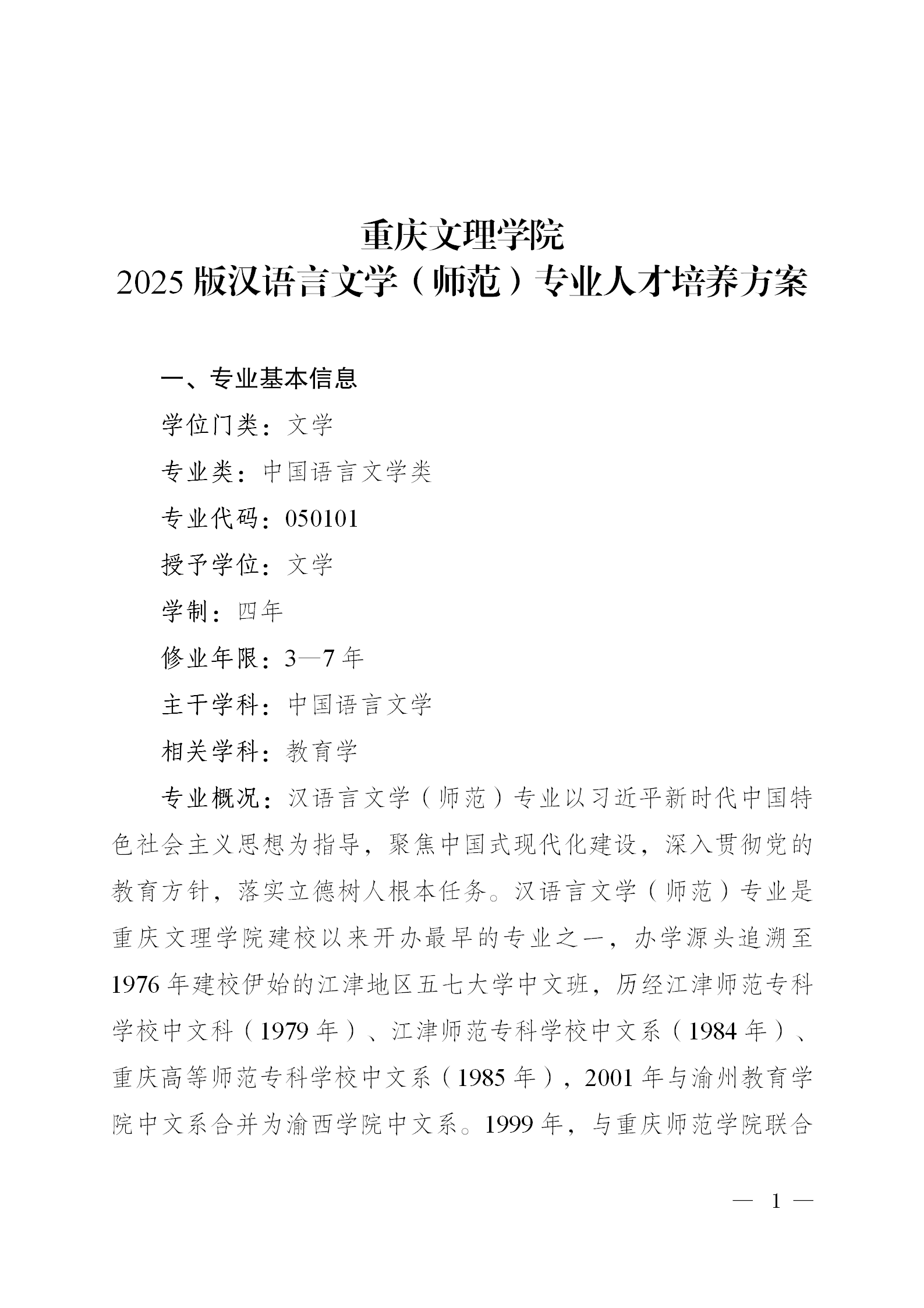 汉语言文学(师范)专业人才培养方案(2025版)